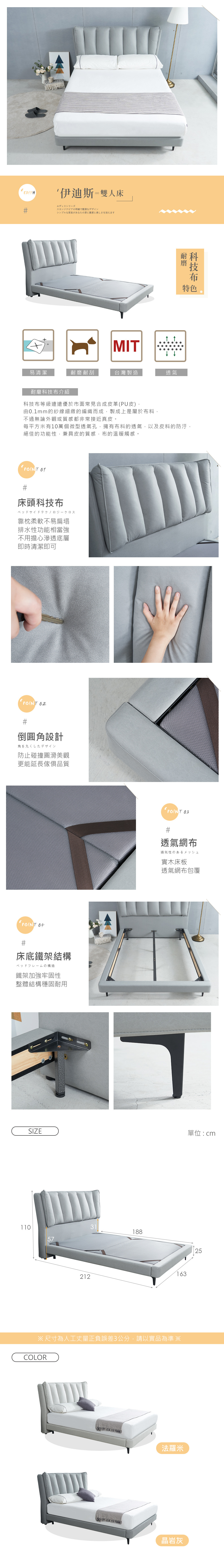 【時尚屋】[DU10]伊迪斯床片型5尺包布雙人床,色系法羅米、晶岩灰色為主,點綴臥室視覺空間美感,材質上採用科技布、實木床板、鐵架等,均高於市場之產品規格,品質絕對有保證!此雙人床舒適程度絕對可滿足您的需求!設計質感及耐用性絕對是首選。有了他絕對可以讓您煥然一新!時尚屋帶給您對家具時尚新品味。