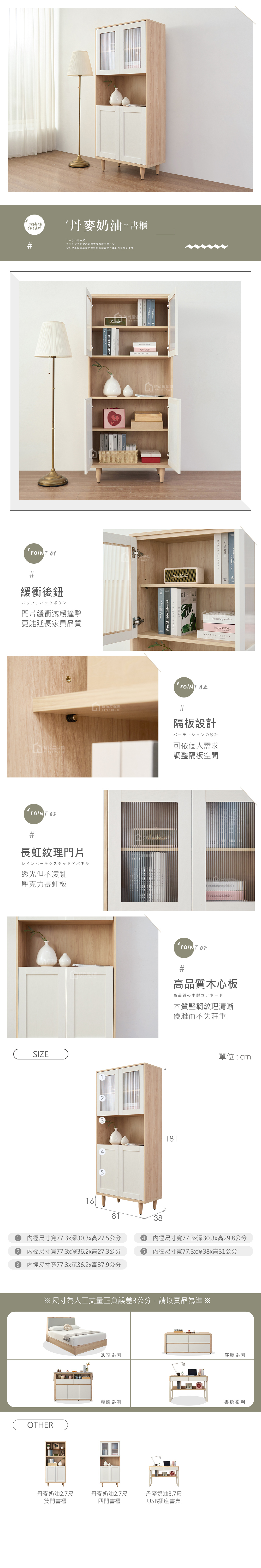 名稱:丹麥奶油2.7尺四門書櫃