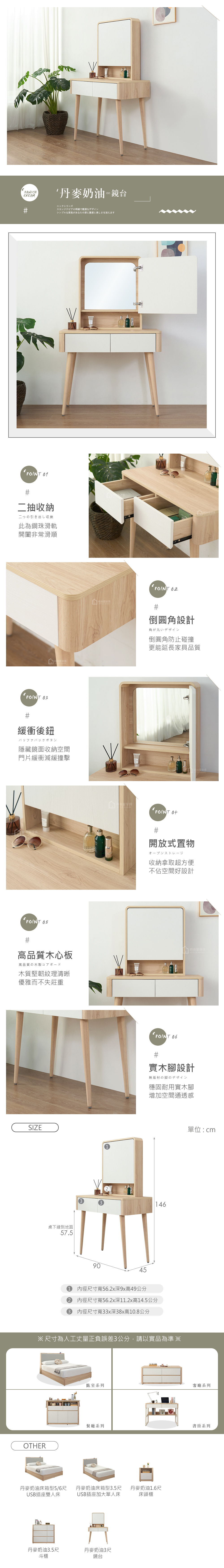 名稱:丹麥奶油3尺鏡台
