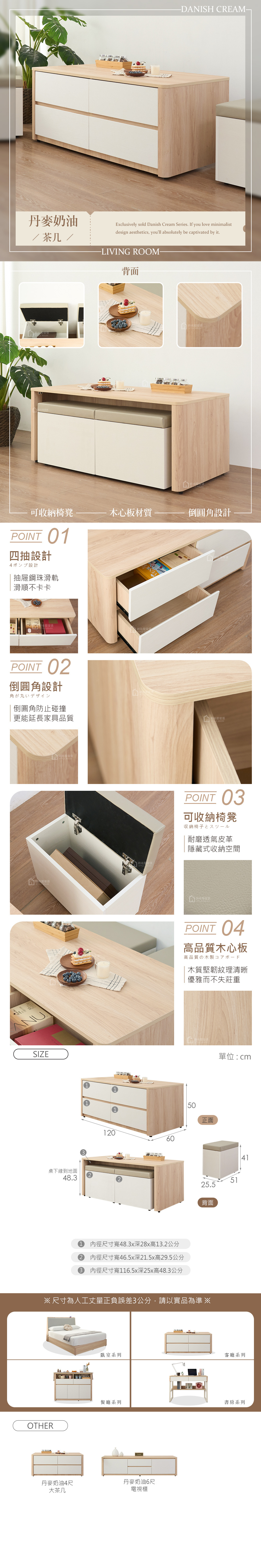 名稱:丹麥奶油4尺大茶几