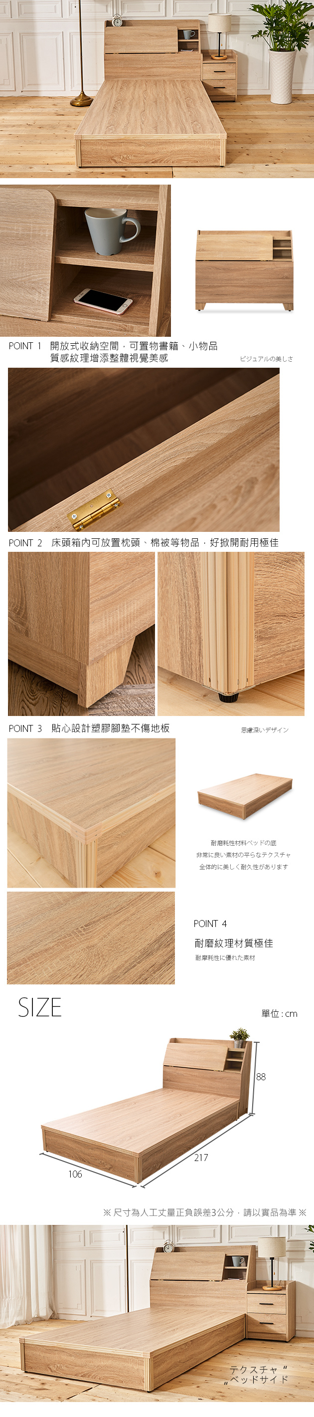 【時尚屋】[UZR9]亞伯特3.5尺床箱型加大單人床,色系以橡木色為主,點綴臥室視覺空間美感,材質上採用木心板、三分板等,均高於市場之產品規格,品質絕對有保證!此床架不包含床頭櫃,舒適程度絕對可滿足您的需求!設計質感及耐用性絕對是首選。有了他絕對可以讓您煥然一新!時尚屋帶給您對家具時尚新品味。