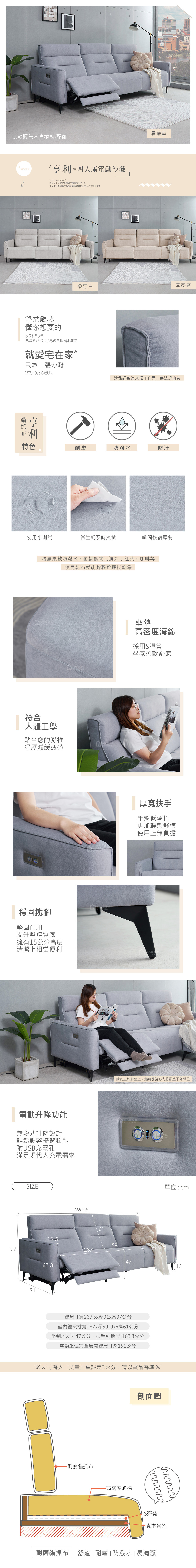 【時尚屋】[FZ11]亨利四人座貓抓布電動沙發,色系以晨曦藍色為主,點綴客廳視覺空間美感,材質上採用耐磨貓抓布、高密度泡棉、S彈簧、實木骨架等,均高於市場之產品規格,品質絕對有保證!乘坐舒適度達到最高效果!設計質感及耐用性絕對是首選。有了他絕對可以讓您煥然一新!時尚屋帶給您對家具時尚新品味。