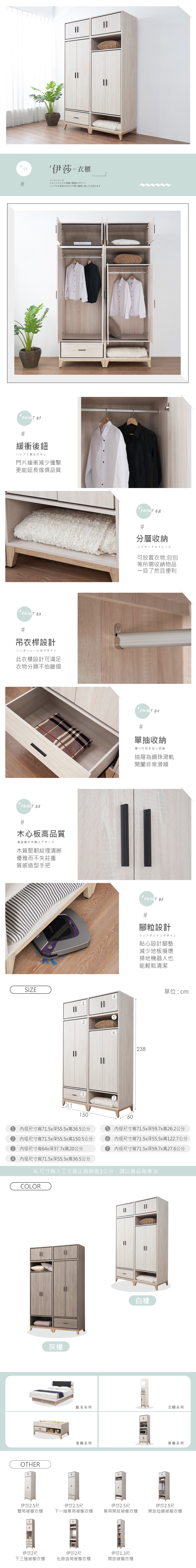 【時尚屋】[RV9]伊莎5尺單吊開放被櫥衣櫃,色系白橡、灰橡色為主,點綴臥室視覺空間美感,材質上採用木心板、緩衝後鈕、鋼珠滑軌等,均高於市場之產品規格,品質絕對有保證!此衣櫃在收納空間上採雙開門+單抽,絕對可滿足您對收納的需求,相當於收納櫃之功能!有了他絕對可以讓您煥然一新!時尚屋帶給您對家具時尚新品味。