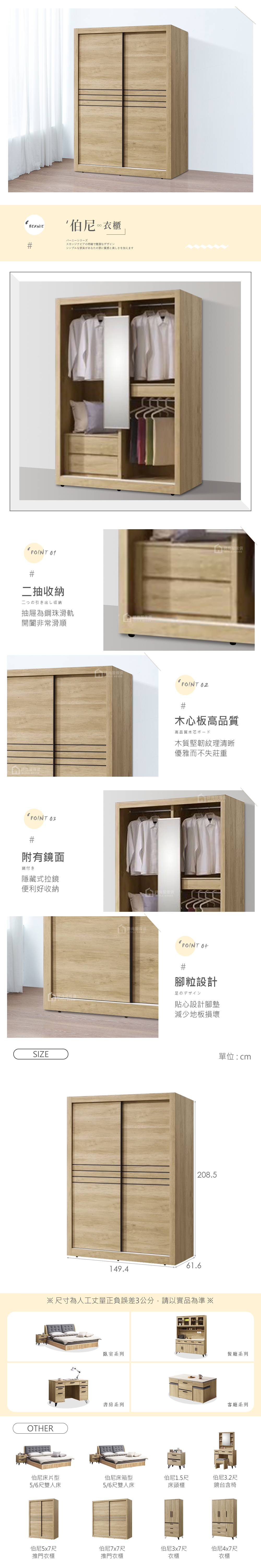 【時尚屋】[DU10]伯尼5x7尺推門衣櫃,色系橡木色為主,點綴臥室視覺空間美感,材質上採用木心板、鋼珠滑軌等,均高於市場之產品規格,品質絕對有保證!此衣櫃在收納空間上採二抽+滑門,絕對可滿足您對收納的需求,相當於收納櫃之功能!有了他絕對可以讓您煥然一新!時尚屋帶給您對家具時尚新品味。
