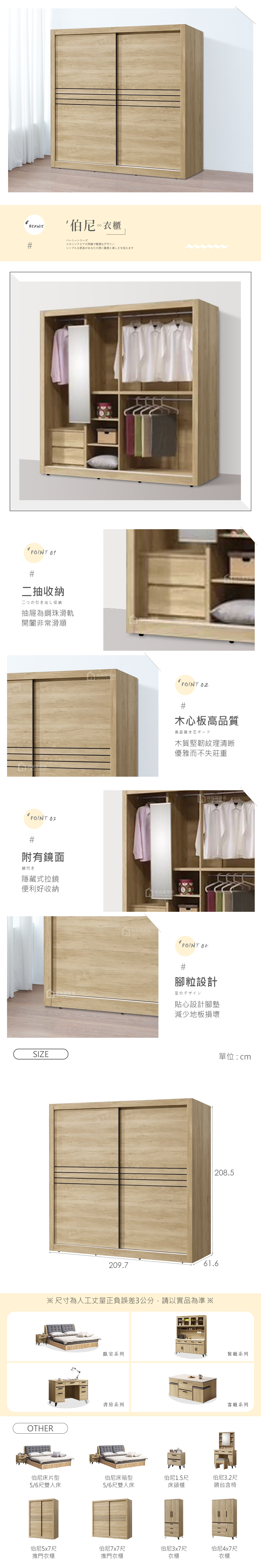 名稱:伯尼7x7尺推門衣櫃