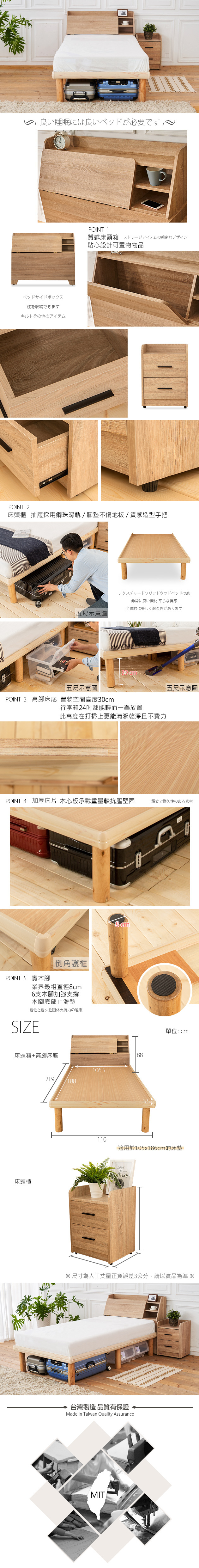 尺寸:床組-寬110x深219x高88公分、床頭櫃-寬40x深34x高52公分