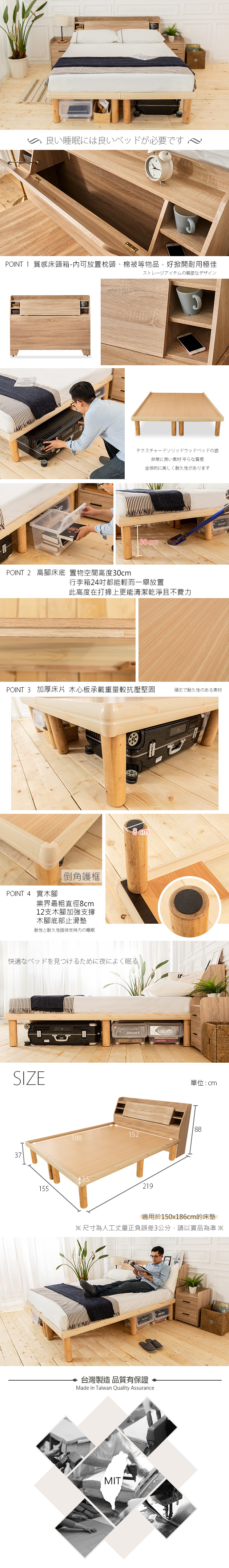 【時尚屋】[UZR9]佐野5尺床箱型高腳雙人床,色系以白橡色為主,點綴臥室視覺空間美感,材質上採用木心板、實木腳等,均高於市場之產品規格,品質絕對有保證!此床架不包含床頭櫃-床墊,舒適程度絕對可滿足您的需求!設計質感及耐用性絕對是首選。有了他絕對可以讓您煥然一新!時尚屋帶給您對家具時尚新品味。