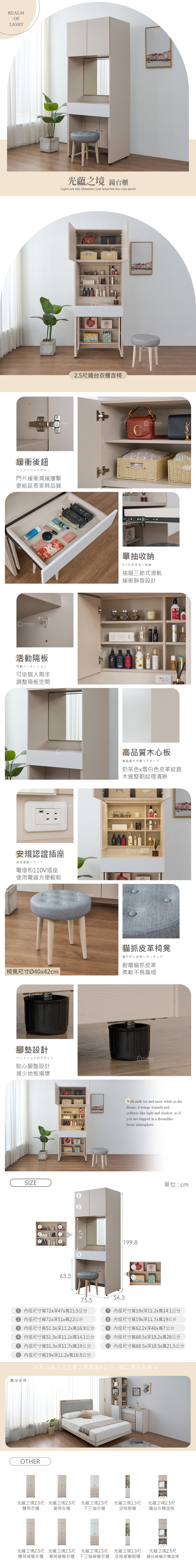 名稱:光蘊之境2.5尺LED燈鏡台衣櫃含椅