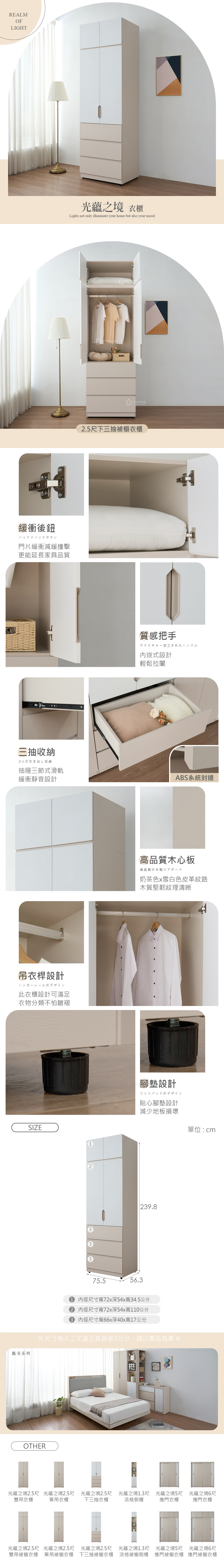 名稱:光蘊之境2.5尺下三抽被櫥衣櫃