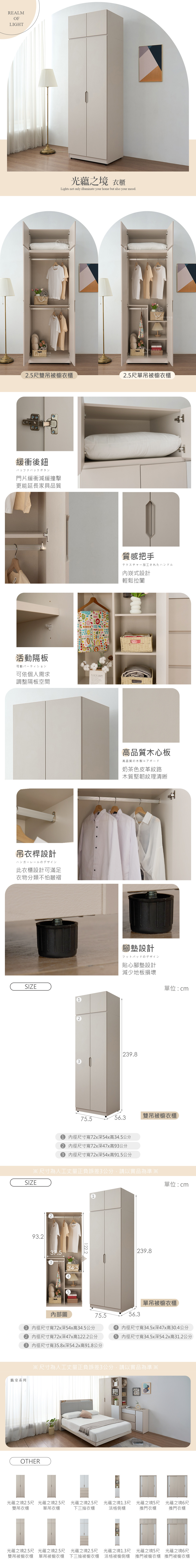 名稱:光蘊之境2.5尺被櫥衣櫃