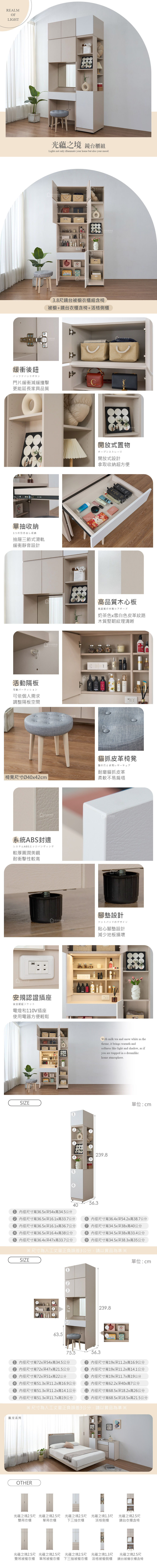 名稱:光蘊之境3.8尺鏡台被櫥衣櫃組含椅