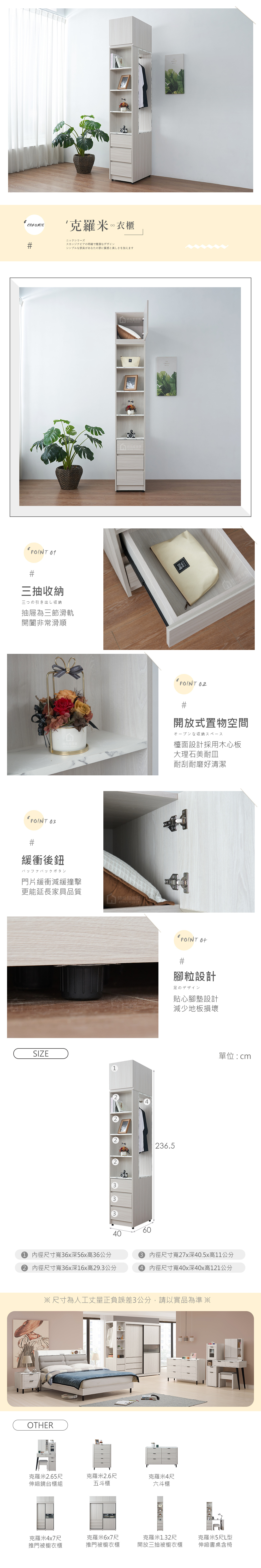 名稱:克羅米1.32尺開放三抽被櫥衣櫃
