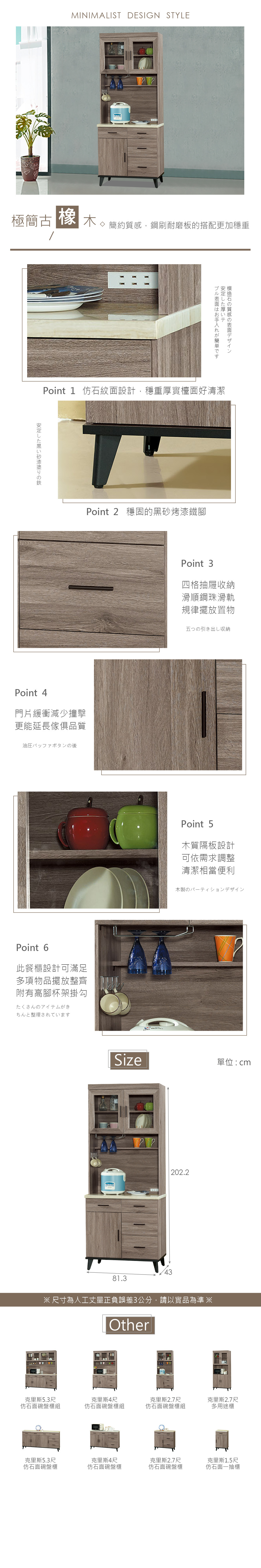 名稱:克里斯2.7尺仿石面碗盤櫃組