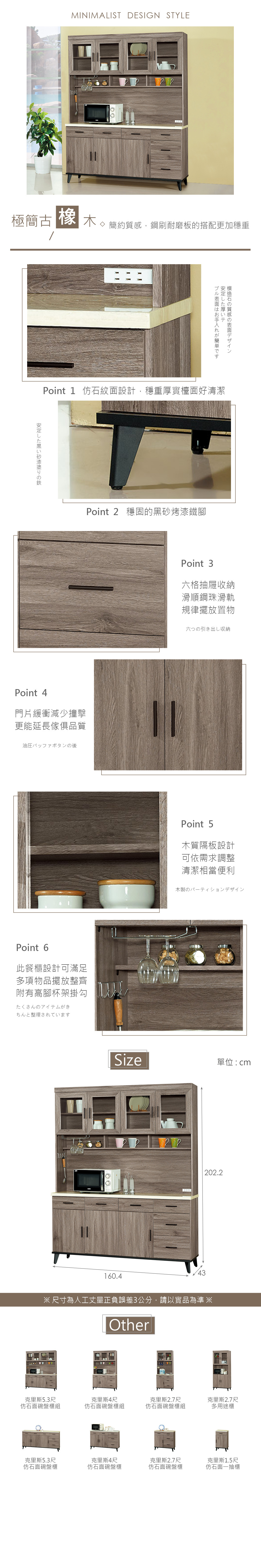 名稱:克里斯5.3尺仿石面碗盤櫃組