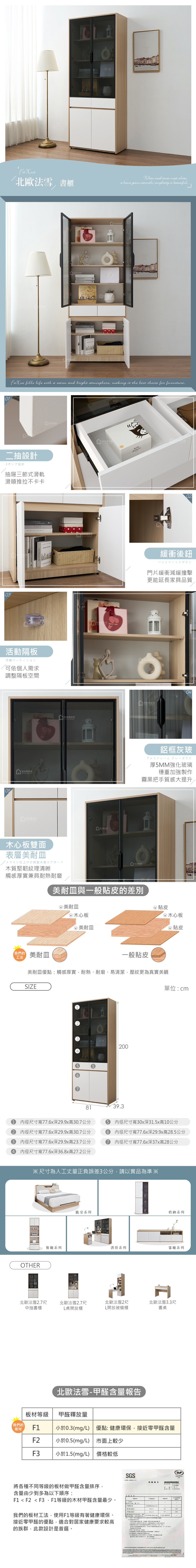 【時尚屋】[DU13]北歐法雪2.7尺中抽書櫃,色系橡木雙色為主,點綴書房視覺空間美感,材質上採用木心板雙面表層美耐皿、ABS封邊、三節式滑軌、緩衝後鈕厚5mm強化灰玻等,均高於市場之產品規格,品質絕對有保證!此書櫃在收納空間上採二抽,絕對可滿足您對收納的需求,相當於收納櫃之功能!有了他絕對可以讓您煥然一新!時尚屋帶給您對家具時尚新品味。