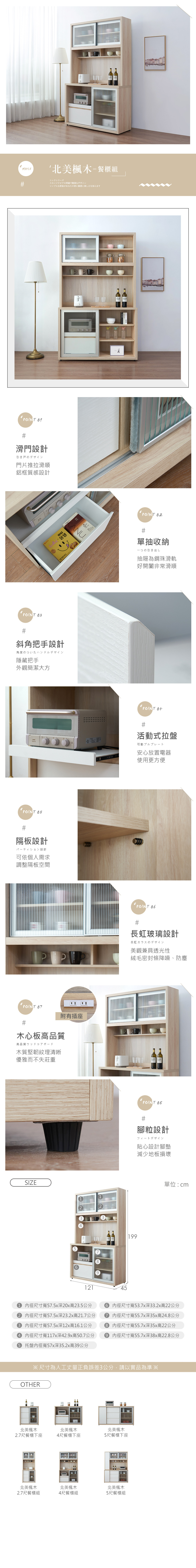 名稱:北美楓木長虹玻璃4尺餐櫃組