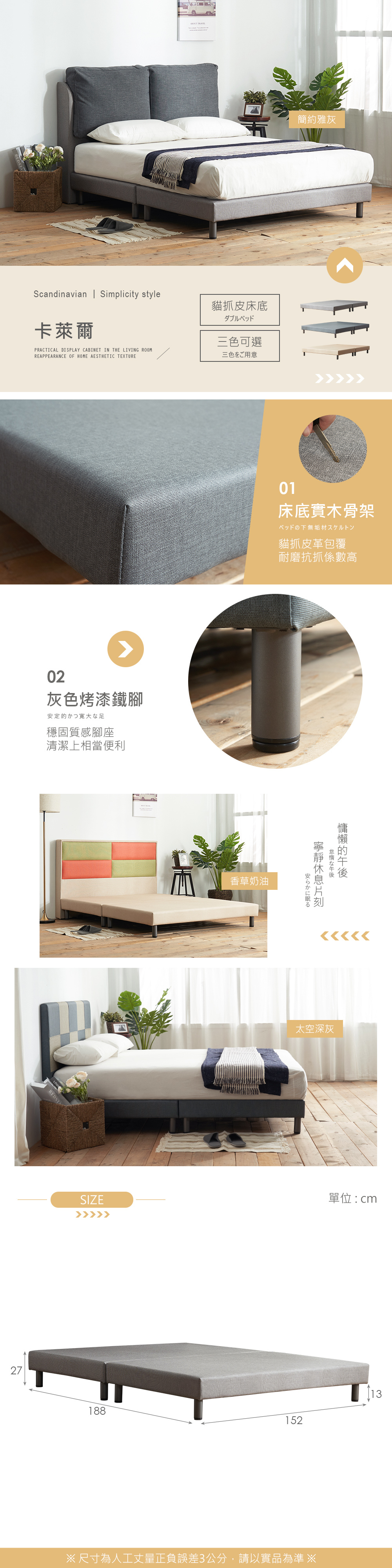 名稱:卡萊爾貓抓皮5尺雙人床底