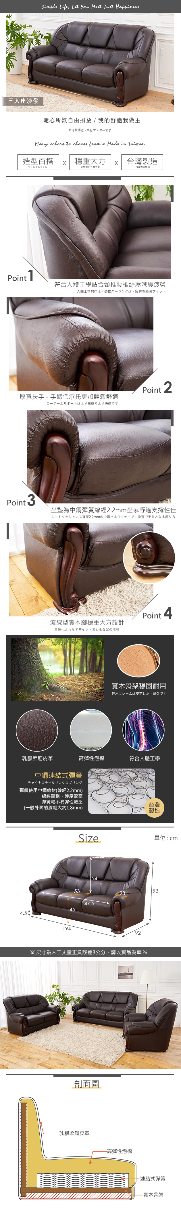 | 名稱:佐伊三人座中鋼彈簧乳膠柔韌皮沙發 型號:FZ11-115-3 內容:乳膠柔韌皮革、高彈性泡棉、連結式彈簧、實木骨架 尺寸:寬194x深92x高93公分 【時尚屋】[FZ11]佐伊三人座中鋼彈簧乳膠柔韌皮沙發,色系以咖啡色為主,點綴客廳視覺空間美感,材質上採用乳膠柔韌皮革、高彈性泡棉、連結式彈簧、實木骨架等,均高於市場之產品規格,品質絕對有保證!乘坐舒適度達到最高效果!設計質感及耐用性絕對是首選。有了他絕對可以讓您煥然一新!時尚屋帶給您對家具時尚新品味。 ◆採用符合標準材質讓你用的安心。 ◆此商品不需要DIY組立,此商品為組立後之成品。 ◆品質保證、專業設計、貼心服務。 ◆全由專人配送到家,專業安心服務,替你省下更多時間。 |