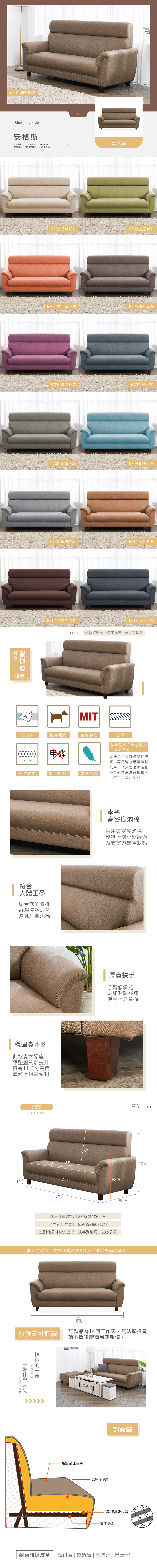 | 名稱:安格斯三人座透氣貓抓皮沙發 型號:FZ11-130-3 內容:貓抓皮革、高密度泡棉、蛇型彈簧、實木骨架、實木腳 尺寸:寬202x深85.5x高106公分 【時尚屋】[FZ11]安格斯三人座透氣貓抓皮沙發,色系以和煦咖啡色為主,點綴客廳視覺空間美感,材質上採用貓抓皮革、高密度泡棉、蛇型彈簧、實木骨架、實木腳等,均高於市場之產品規格,品質絕對有保證!乘坐舒適度達到最高效果!設計質感及耐用性絕對是首選。有了他絕對可以讓您煥然一新!時尚屋帶給您對家具時尚新品味。 ◆採用符合標準材質讓你用的安心。 ◆此商品不需要DIY組立,此商品為組立後之成品。 ◆品質保證、專業設計、貼心服務。 ◆全由專人配送到家,專業安心服務,替你省下更多時間。 |