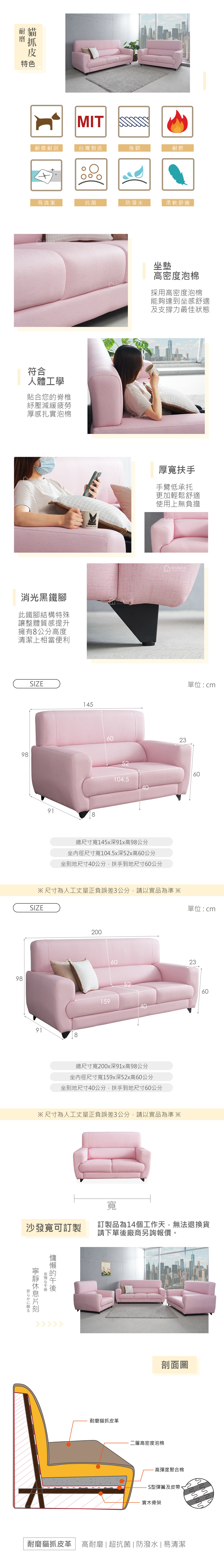 尺寸:二人座-寬145x深91x高98公分、三人座-寬200x深91x高98公分