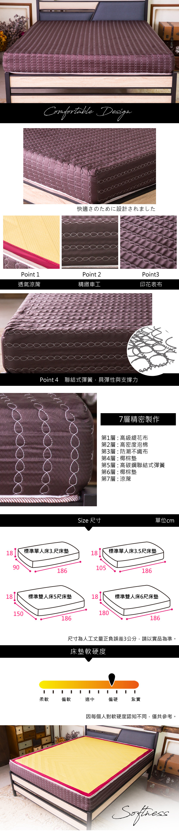 名稱:名傑冬夏兩用硬式6尺加大雙人機能彈簧床墊