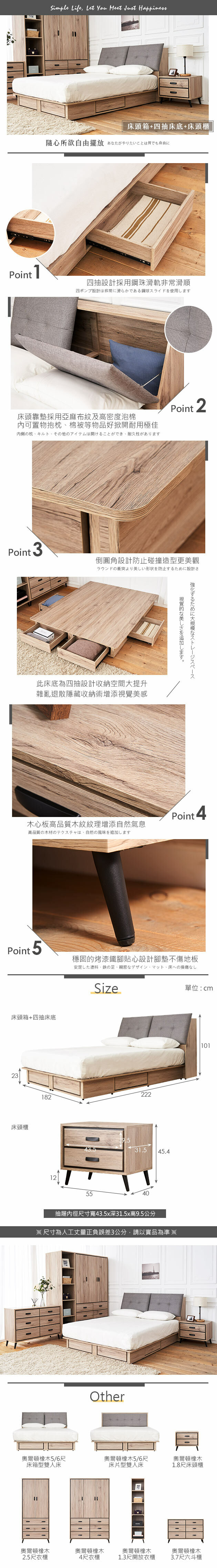 名稱:奧爾頓橡木6尺床箱型3件組-床箱+床底+床頭櫃