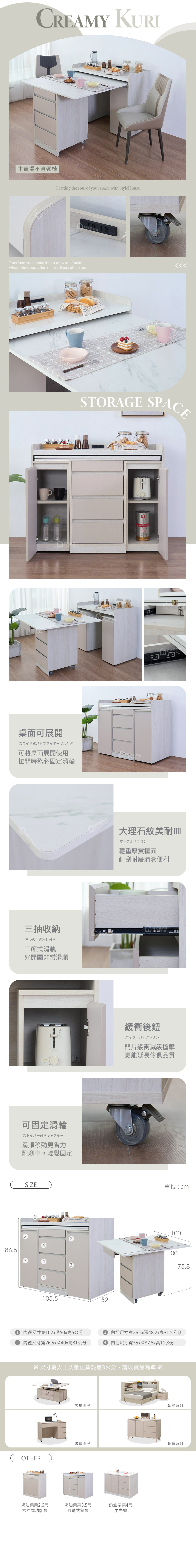 名稱:奶油栗栗3.5尺移動式餐櫃