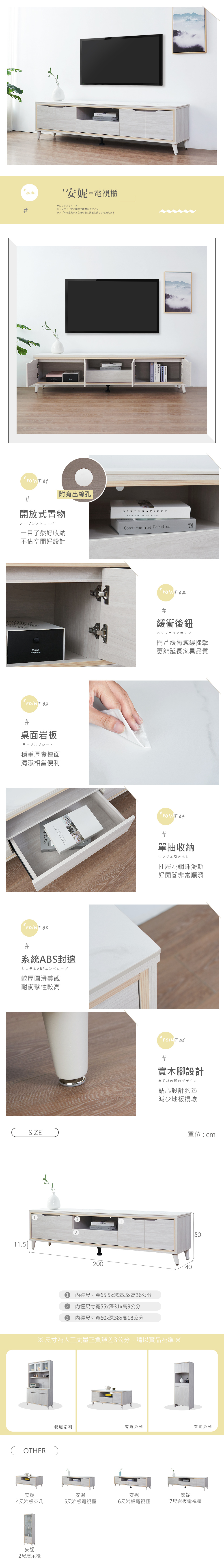 【時尚屋】[GZ11]安妮7尺岩板電視櫃,色系白橡色為主,點綴客廳視覺空間美感,材質上採用木心板、桌面岩板、鋼珠滑軌、緩衝後鈕、實木腳等,均高於市場之產品規格,品質絕對有保證!此電視櫃在收納空間上採單抽,絕對可滿足您對收納的需求,相當於收納櫃之功能!有了他絕對可以讓您煥然一新!時尚屋帶給您對家具時尚新品味。