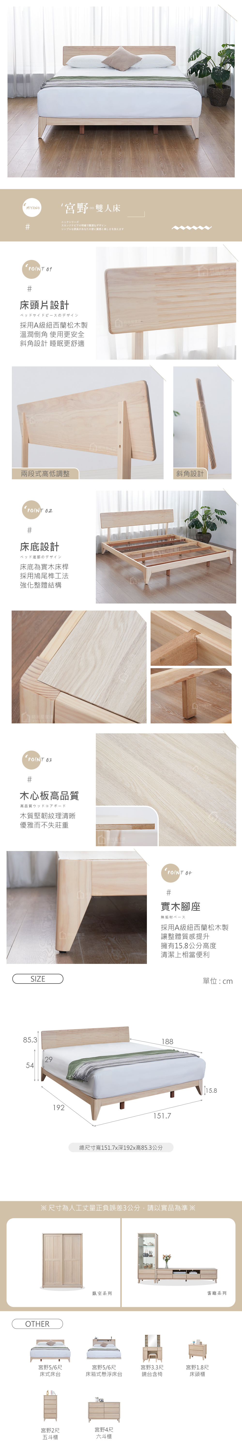 【時尚屋】[NM23]宮野5尺床式床台,色系松木色為主,點綴臥室視覺空間美感,材質上採用木心板、A級紐西蘭松木製等,均高於市場之產品規格,品質絕對有保證!此雙人床舒適程度絕對可滿足您的需求!設計質感及耐用性絕對是首選。有了他絕對可以讓您煥然一新!時尚屋帶給您對家具時尚新品味。