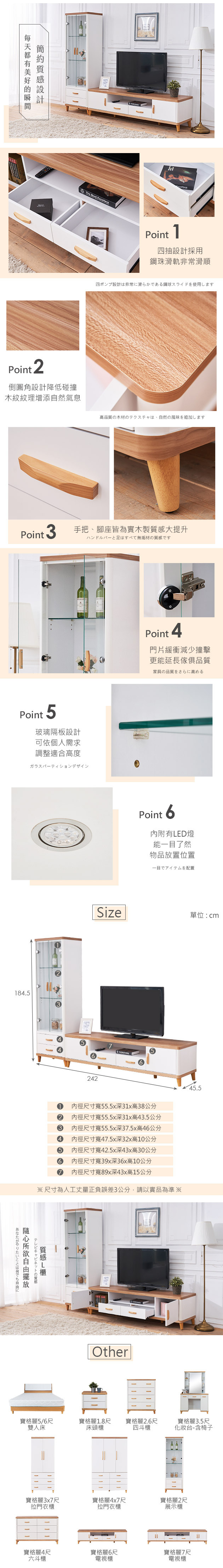 尺寸:寬242x深45.5x高184.5公分