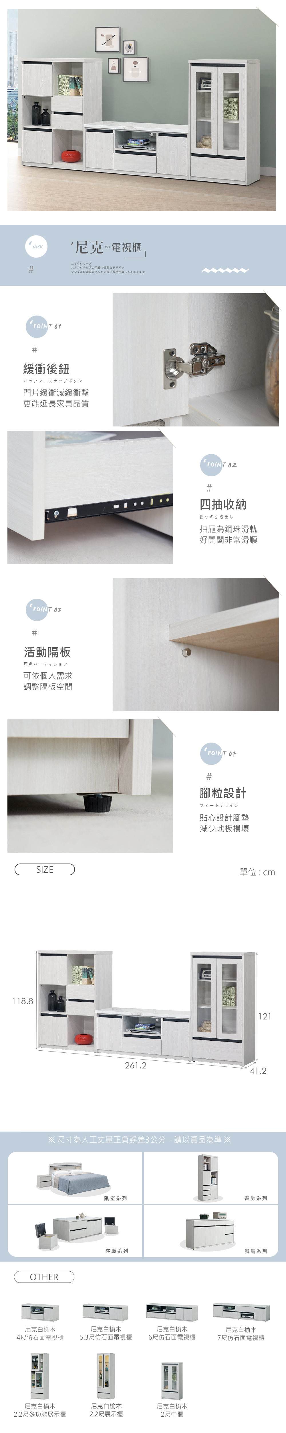 名稱:尼克白榆木8.7尺L型仿石面收納電視櫃