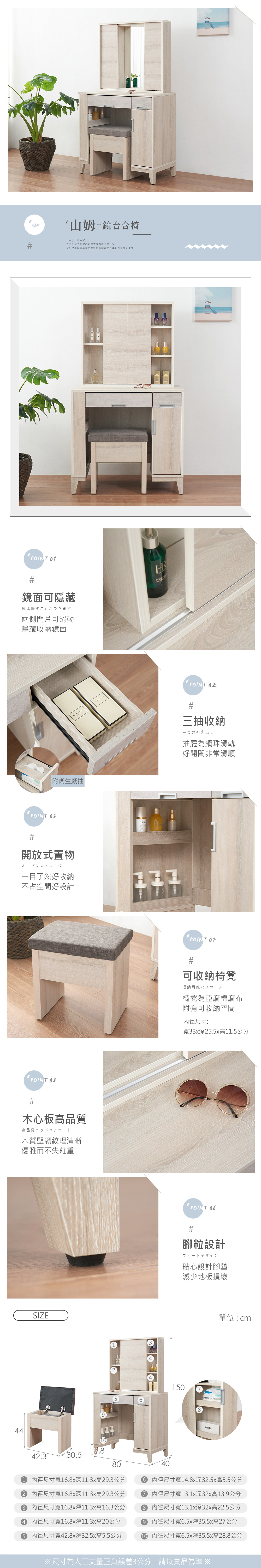 名稱:山姆2.7尺鏡台-含椅
