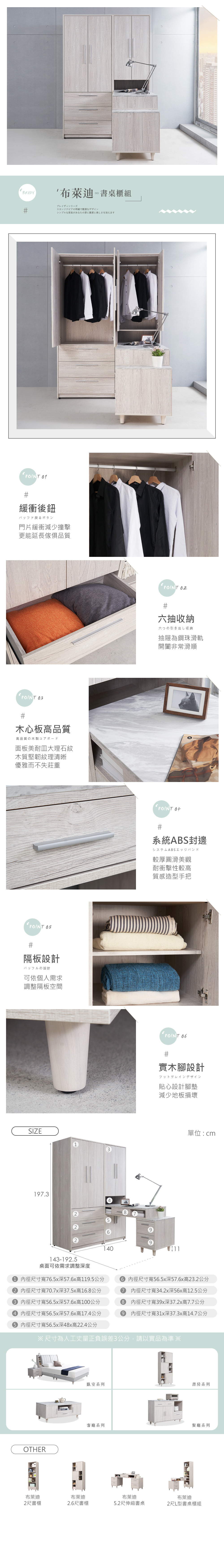 名稱:布萊迪4.6尺L型書桌衣櫃組