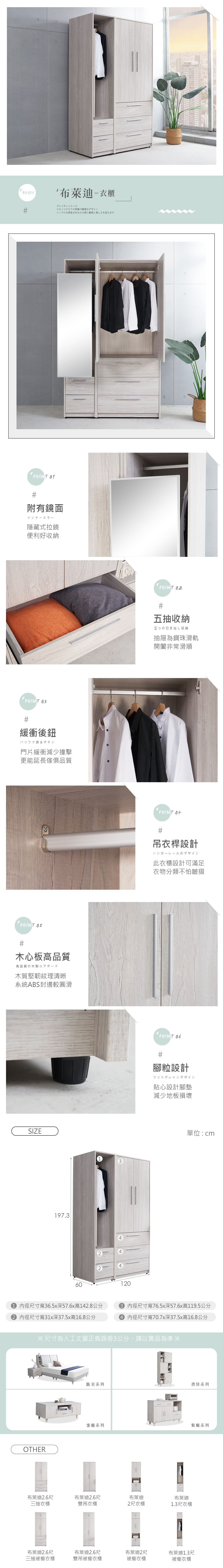 【時尚屋】[MX20]布萊迪4尺三抽衣櫃,色系白橡色為主,點綴臥室視覺空間美感,材質上採用木心板、緩衝後鈕、鋼珠滑軌、ABS封邊等,均高於市場之產品規格,品質絕對有保證!此衣櫃在收納空間上採五抽+雙開門,絕對可滿足您對收納的需求,相當於收納櫃之功能!有了他絕對可以讓您煥然一新!時尚屋帶給您對家具時尚新品味。