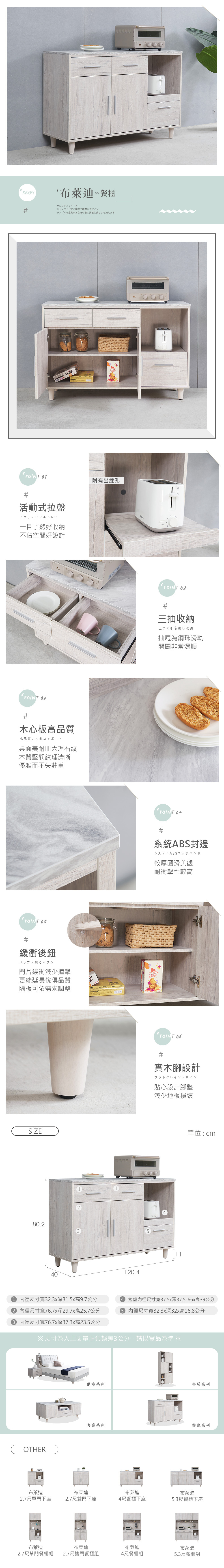 名稱:布萊迪4尺餐櫃下座