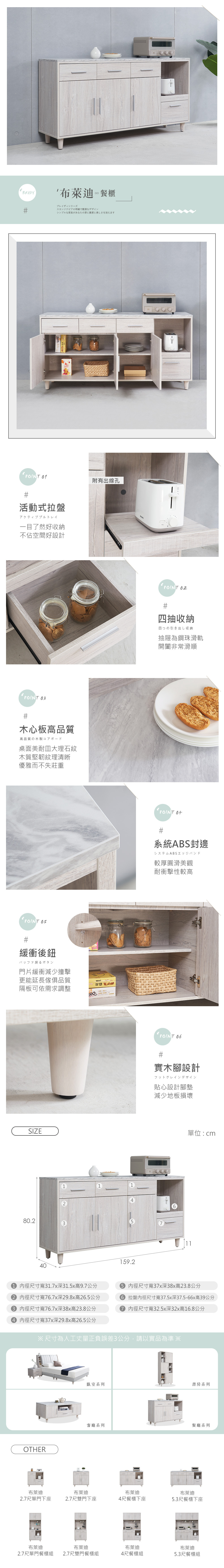【時尚屋】[MX20]布萊迪5.3尺餐櫃下座,色系白橡色為主,點綴餐廳視覺空間美感,材質上採木心板、鋼珠滑軌、緩衝後鈕、實木腳、ABS封邊等,均高於市場之產品規格,品質絕對有保證!此餐櫃在收納空間上採四抽+雙開門+單開門+托盤抽,絕對可滿足您對收納的需求,設計質感及耐用性絕對是首選。有了他絕對可以讓您煥然一新!時尚屋帶給您對家具時尚新品味。