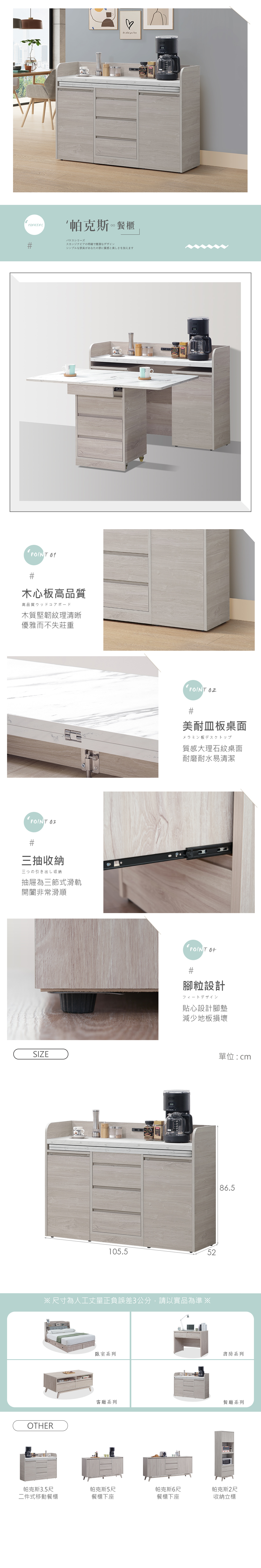 名稱:帕克斯3.5尺二件式移動餐櫃