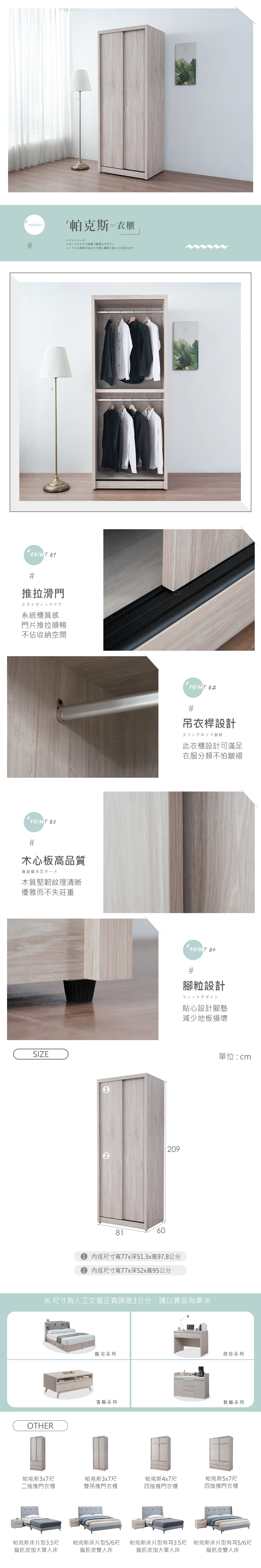 名稱:帕克斯3x7尺雙吊推門衣櫃