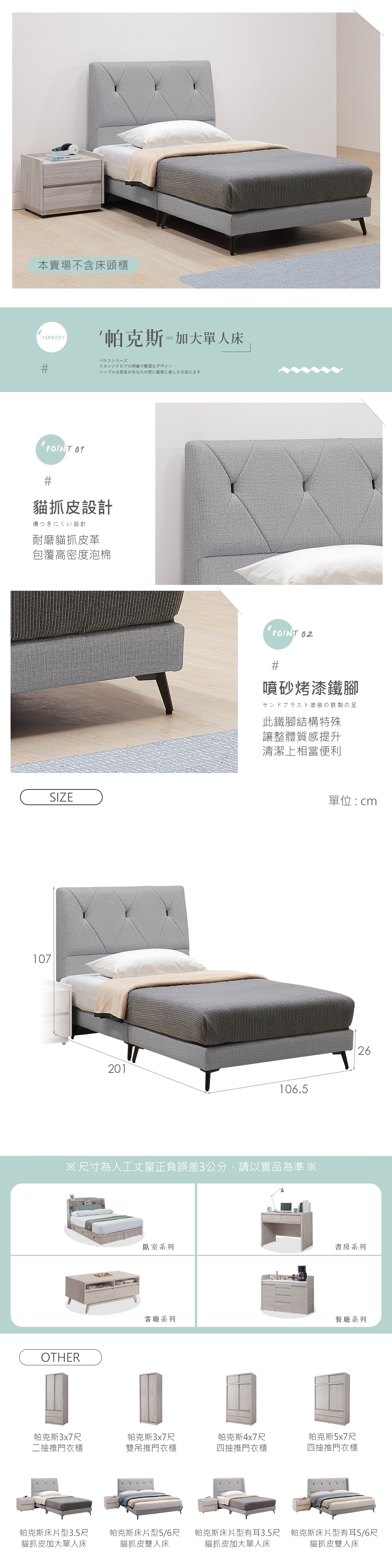 名稱:帕克斯床片型3.5尺貓抓皮加大單人床
