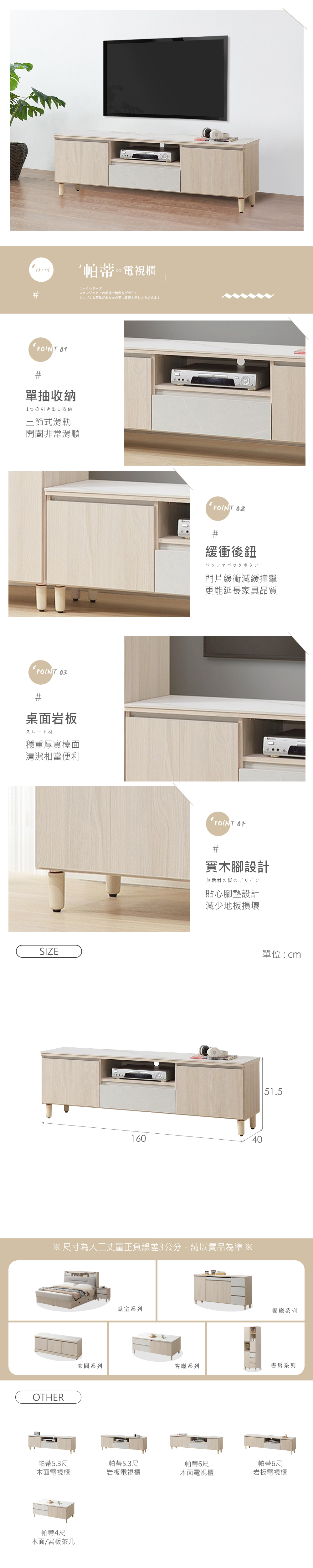 【時尚屋】[CW23]帕蒂5.3尺岩板電視櫃,色系白榆木色為主,點綴客廳視覺空間美感,材質上採用木心板、緩衝後鈕、三節式滑軌、岩板等,均高於市場之產品規格,品質絕對有保證!此電視櫃在收納空間上採單抽+單開門,絕對可滿足您對收納的需求,相當於收納櫃之功能!有了他絕對可以讓您煥然一新!時尚屋帶給您對家具時尚新品味。
