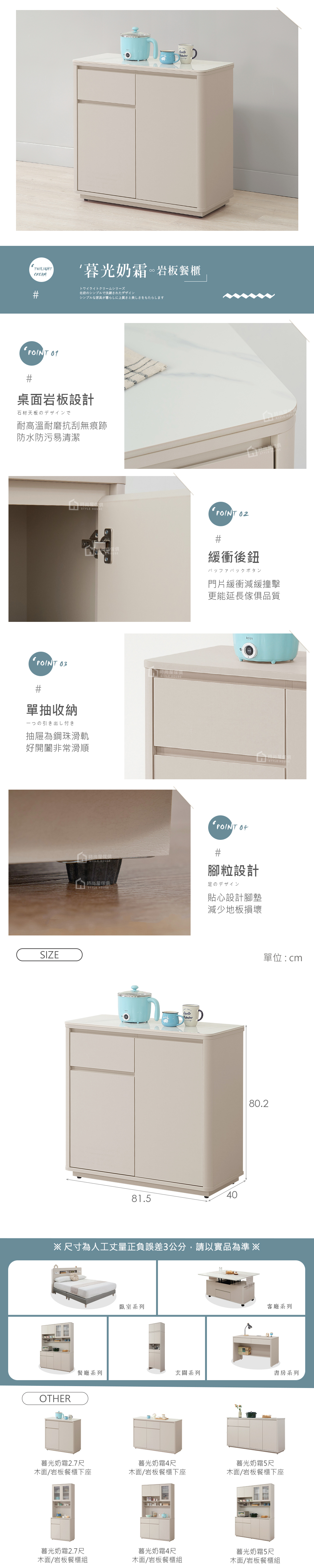 名稱:暮光奶霜2.7尺岩板餐櫃下座