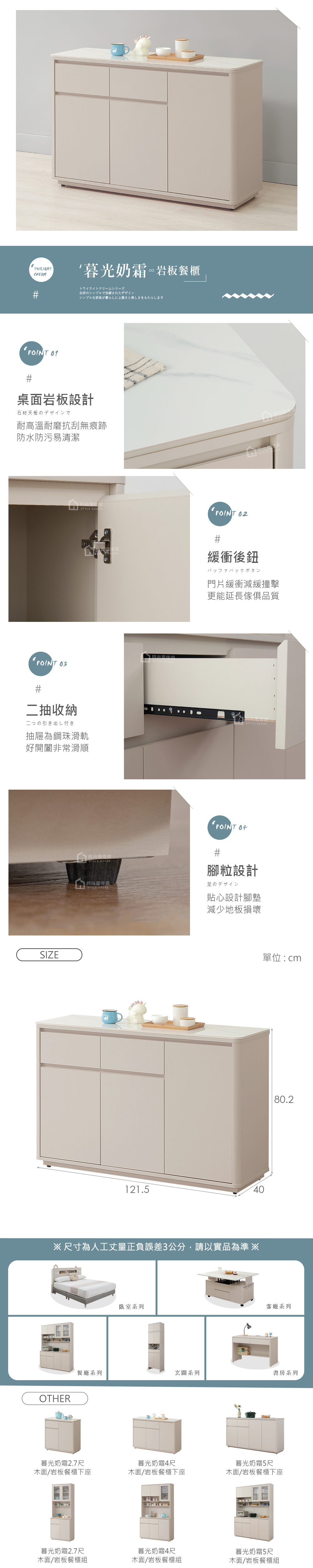 名稱:暮光奶霜4尺岩板餐櫃下座