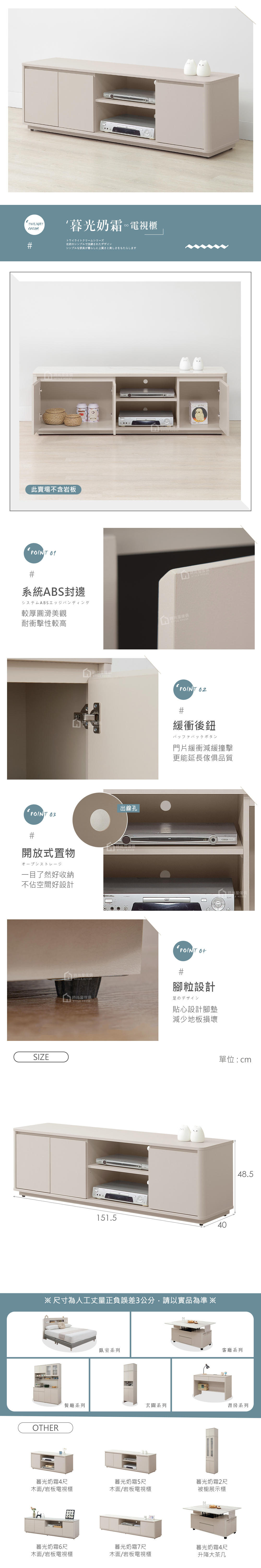 【時尚屋】[MX23]暮光奶霜5尺電視櫃,色系奶茶色為主,點綴客廳視覺空間美感,材質上採用木心板、緩衝後鈕等,均高於市場之產品規格,品質絕對有保證!此電視櫃在收納空間上採單雙開門,絕對可滿足您對收納的需求,相當於收納櫃之功能!有了他絕對可以讓您煥然一新!時尚屋帶給您對家具時尚新品味。