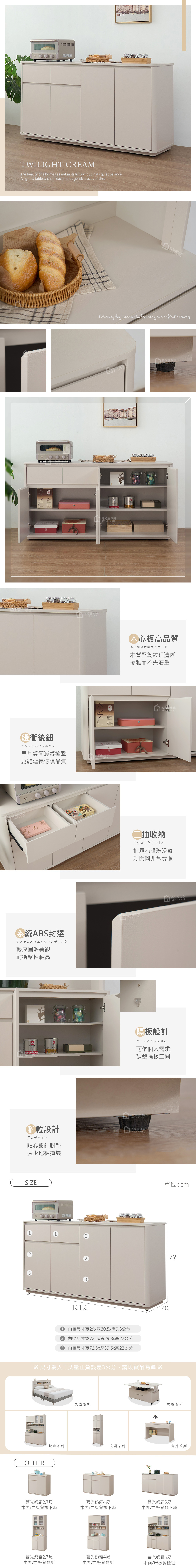 【時尚屋】[MX23]暮光奶霜5尺餐櫃下座,色系奶茶色為主,點綴廚房視覺空間美感,材質上採用木心板、緩衝後鈕、鋼珠滑軌等,均高於市場之產品規格,品質絕對有保證!此餐櫃在收納空間上採二抽,絕對可滿足您對收納的需求,相當於收納櫃之功能!有了他絕對可以讓您煥然一新!時尚屋帶給您對家具時尚新品味。