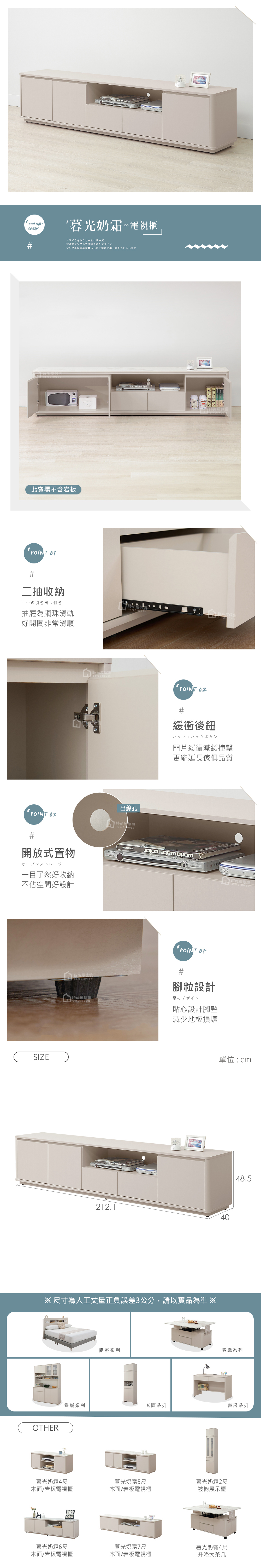 名稱:暮光奶霜7尺電視櫃