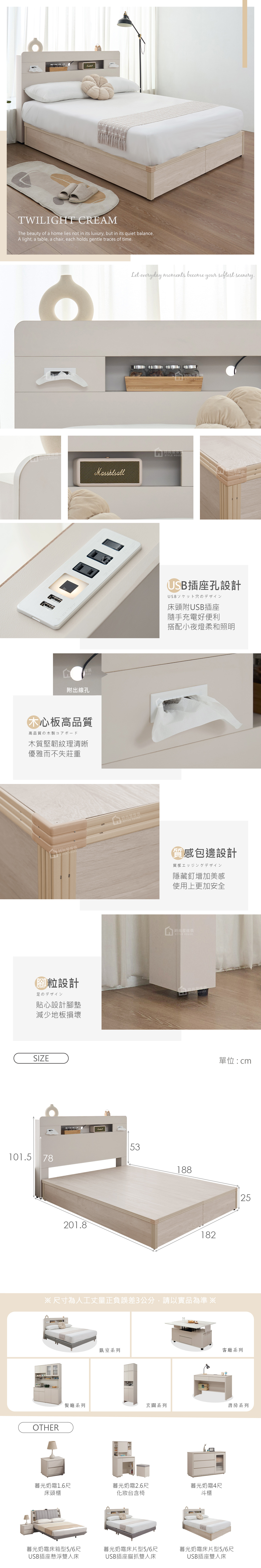 【時尚屋】[MX23]暮光奶霜床片型6尺USB插座加大雙人床,色系奶茶色為主,點綴臥室視覺空間美感,材質上採用木心板、三分板等,均高於市場之產品規格,品質絕對有保證!此雙人床舒適程度絕對可滿足您的需求!設計質感及耐用性絕對是首選。有了他絕對可以讓您煥然一新!時尚屋帶給您對家具時尚新品味。