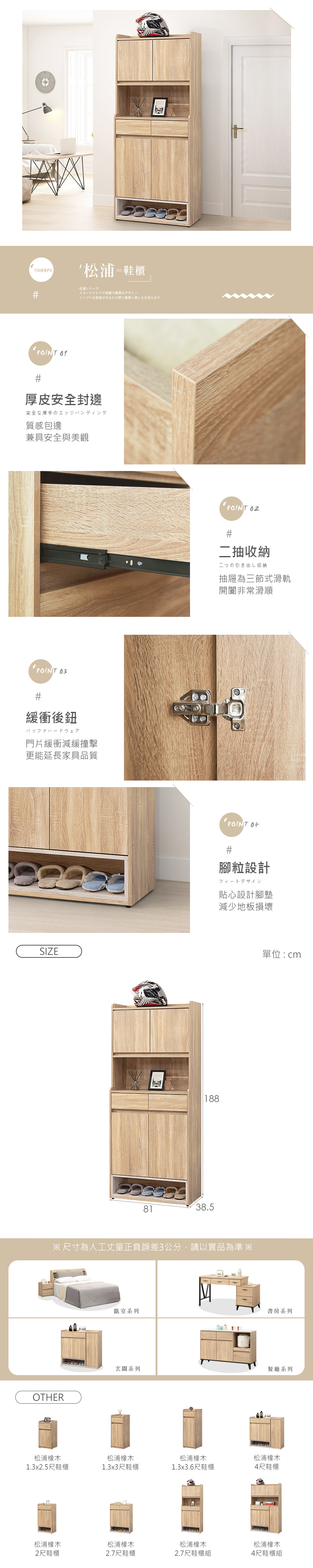 【時尚屋】[XV11]松浦橡木2.7尺鞋櫃,色系橡木色為主,點綴玄關視覺空間美感,材質上採用木心板、三節式滑軌、緩衝後鈕等,均高於市場之產品規格,品質絕對有保證!此鞋櫃在收納空間上採二抽+雙開門,絕對可滿足您對收納的需求,相當於收納櫃之功能!有了他絕對可以讓您煥然一新!時尚屋帶給您對家具時尚新品味。