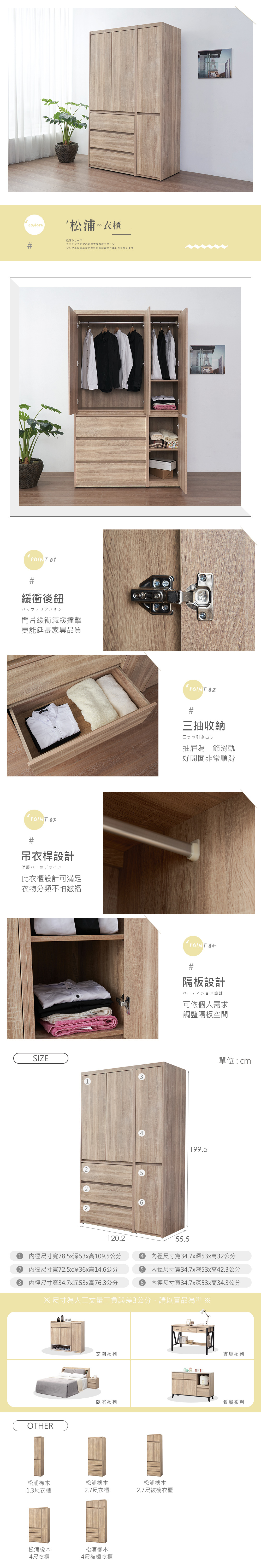 名稱:松浦橡木4尺衣櫃
