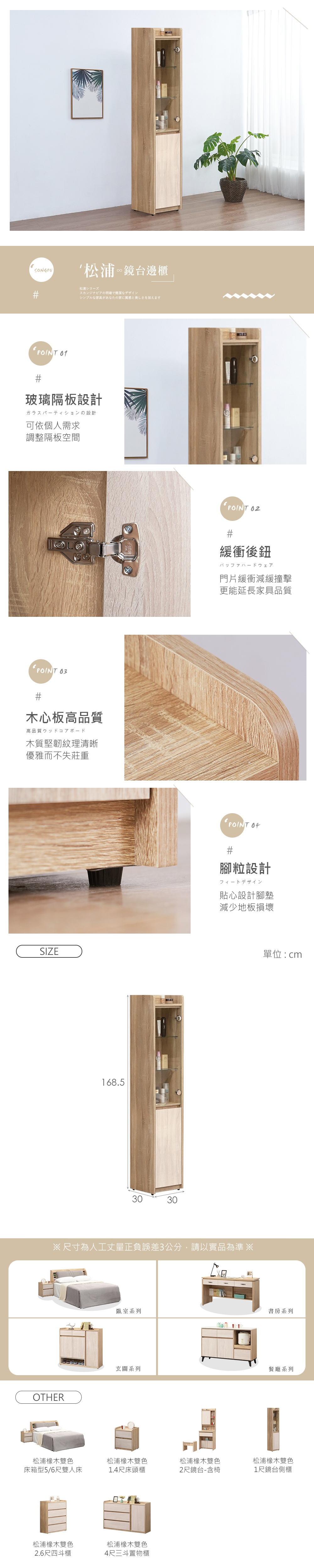 名稱:松浦橡木雙色1尺鏡台側櫃