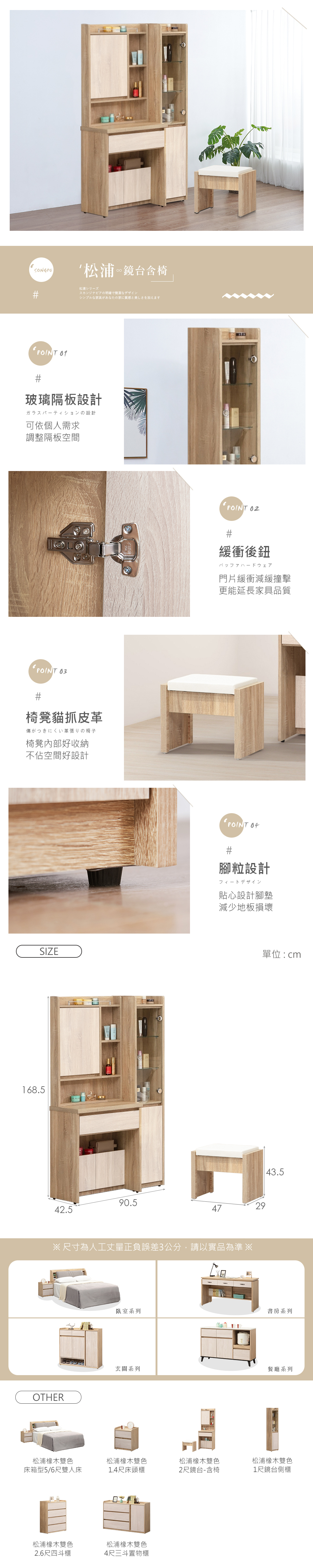 松浦橡木雙色3尺鏡台側櫃組含椅